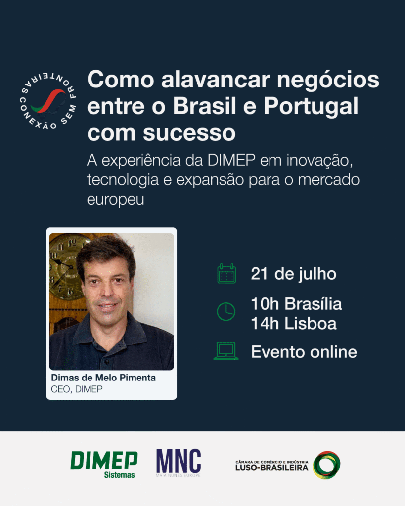 Nesta edição, contaremos com a participação do Grupo DIMEP, que irá partilhar a sua trajectória de expansão para o mercado europeu, com foco em inovação, tecnologia e estratégias comerciais eficazes entre Brasil e Portugal.
