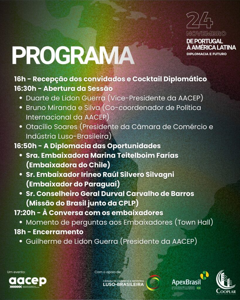 Este é um evento organizado pela AACEP com o apoio da Câmara de Comércio e Indústria Luso-Brasileira; da APEX Brasil e da Cooplar Crl.