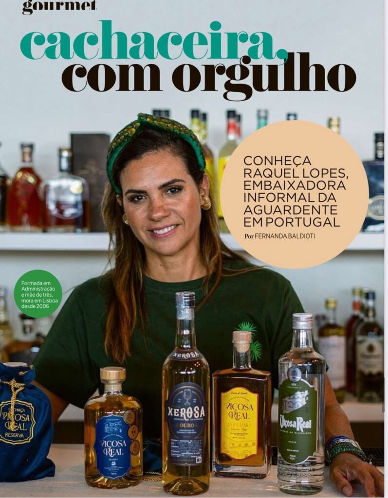 À frente da Casa Cachaça, sua importadora, Raquel representa mais de 30 rótulos de cachaças vindos de destilarias brasileiras e tem ajudado a posicionar o destilado como bebida premium em restaurantes de referência em Portugal.