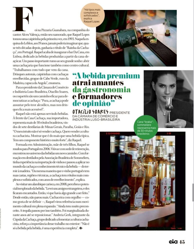 Raquel Lopes, fundadora da Casa Cachaça, associada da CCILB, está nas páginas da revista Ela, do jornal O Globo do último domingo, 07, em matéria que contou com a participação do presidente da Câmara Luso-brasileira, Otacílio Soares.